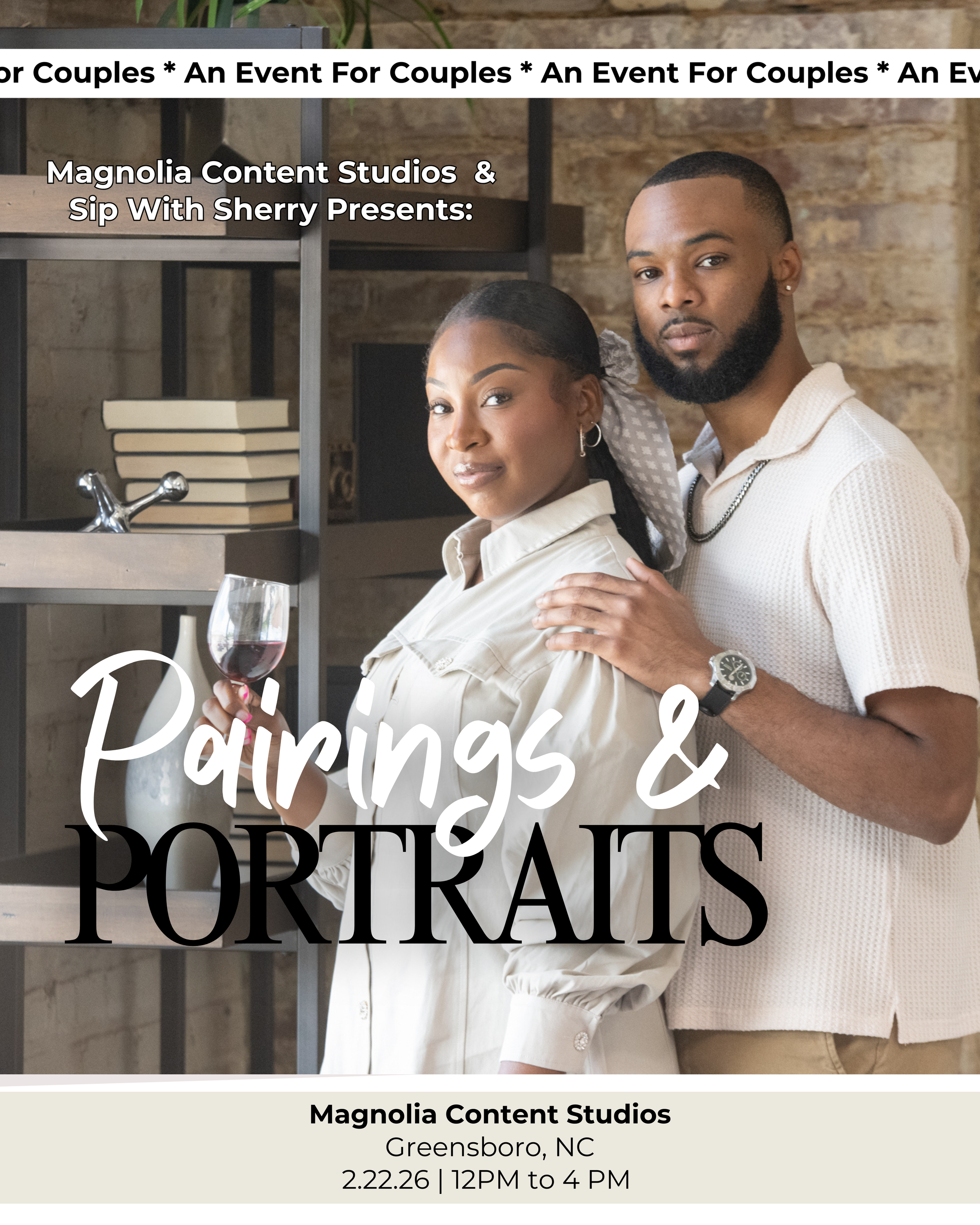 Following the tasting, couples will transition into a beautifully styled portrait session creatively directed and photographed by the owner of @magnoliastudiosgso , Dana B. McKnight. This session offers couples the opportunity to capture their connection in a timeless and artful way.